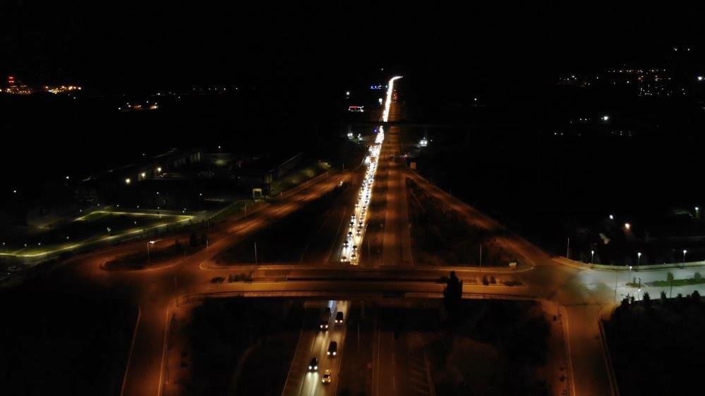 Kilometrelerce oluşan araç trafiği havadan görüntülendi. Yoğunluk karşısında trafik ekipleri, ulaşımın aksamaması için çaba gösteriyor.