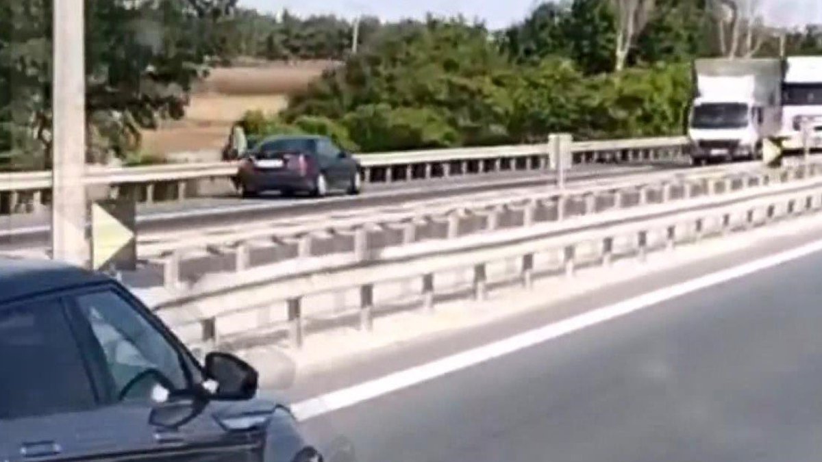 Saat 12.00 sıralarında ters yönde emniyet şeridine giren bir araç hızla ilerlemeye başladı. Otomobil sürücüsü, karşı yönden gelen araçlara aldırış etmeden kilometrelerce yol aldı.