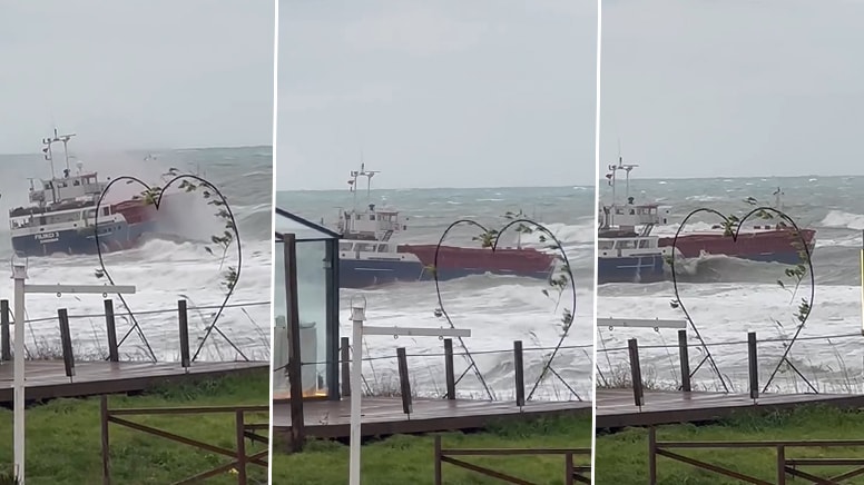 Geminin dalgalarla boğuştuğu anlar cep telefonu kameralarıyla kaydedildi.