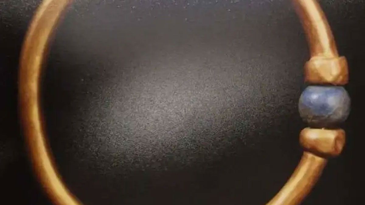 Kayıp eser, Üçüncü Ara Dönem'e tarihlenen Amenemope koleksiyonuna ait. Altından yapılmış bilezikte küresel bir lapis lazuli taşı bulunuyor.