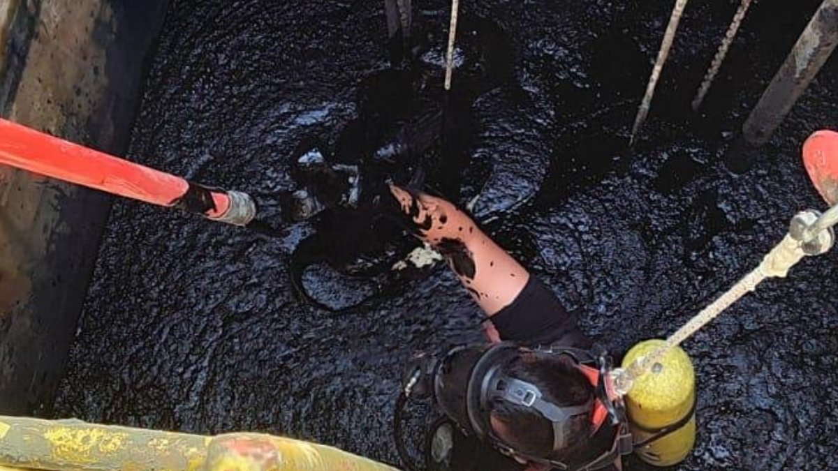 Olay yerine sevk edilen itfaiye ekipleri, özel ekipmanlar ve halatlarla atık havuzuna girerek işçileri bulundukları yerden çıkardı.