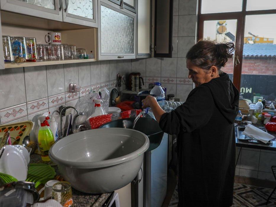 Kara, komşularının evlerinden su doldurduğu bidonlarla yaşamını sürdürüyor. Bulaşıklarını plastik leğene döktüğü suyla yıkayan Kara, duş almak için ise yakınlarının evine gidiyor.