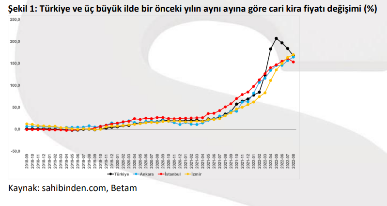 BETAM'ın yaygın bir emlak sitesinin ilanlarından derlediği verilere göre, cari kira fiyatları geçen yıla göre artmış olsa da ortalama kira fiyatı temmuz ve ağustosta azaldı.