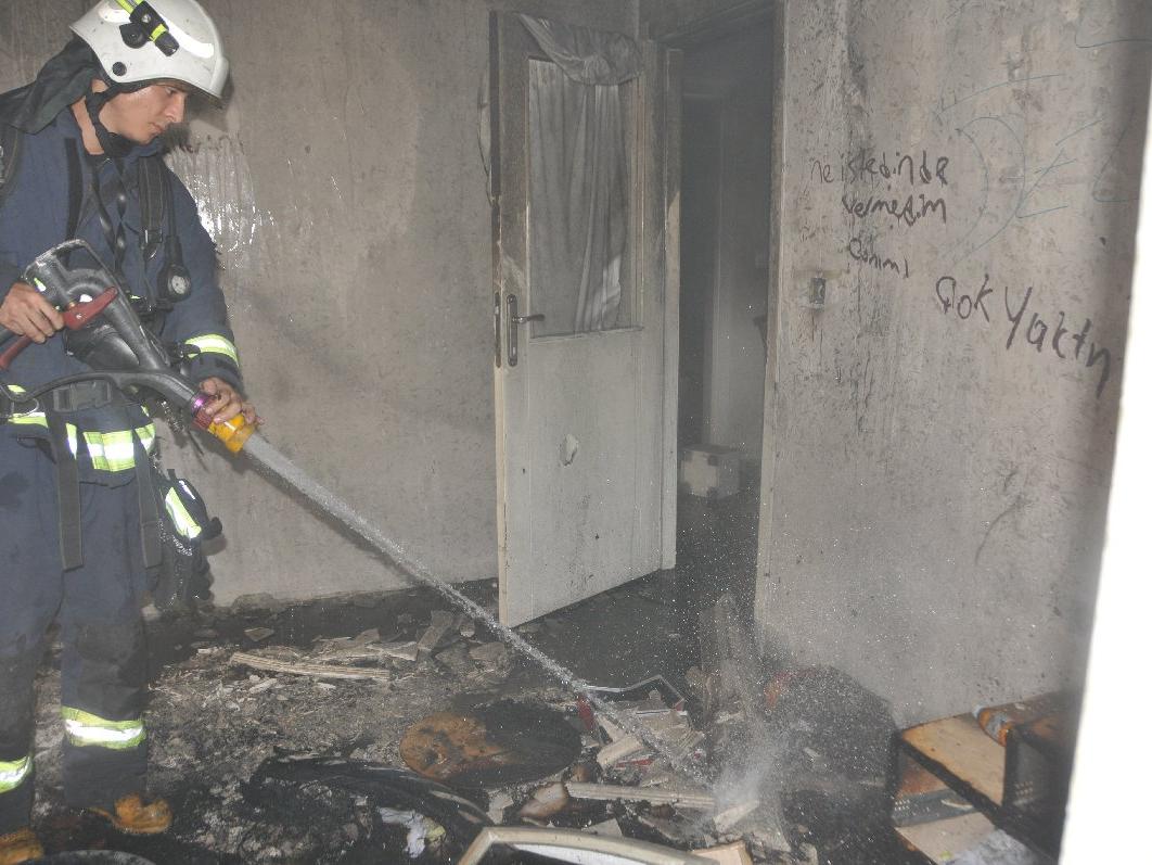 İtfaiyenin müdahalesiyle yangın söndürüldü. Polis soruşturma başlatırken, komşuları ise Caner Tutar'ı suçlayarak, evde zaman zaman yangın çıkardığını öne sürdü. (DHA)