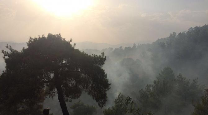 Faruk ÇARK/KİRAZ (İzmir), DHA) İZMİR'in Kiraz İlçesi'ndeki ormanlık alanda henüz belirlenemeyen bir nedenle yangın çıktı. Yangını söndürmek için havadan ve karadan müdahale sürüyor.