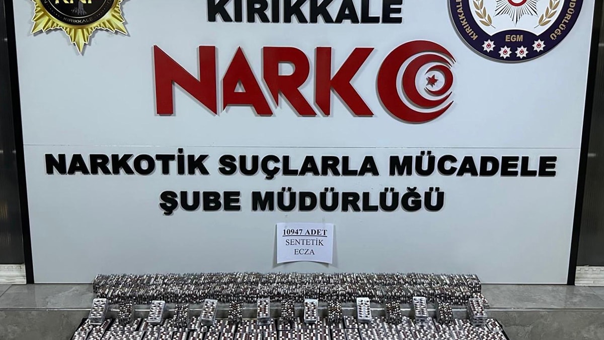Bu kapsamda bir araçta yapılan aramada, 10 bin 947 sentetik hap ve bir miktar sentetik uyuşturucu ele geçirildi.