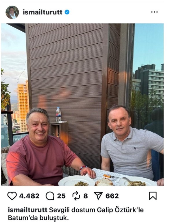 Öztürk’ün Gürcistan’da çeşitli ticari faaliyetlerine devam ettiği bilinirken, İsmail Türüt’ün kendisiyle yemek yediği anlara ait fotoğraflar sosyal medyada hızla yayıldı.