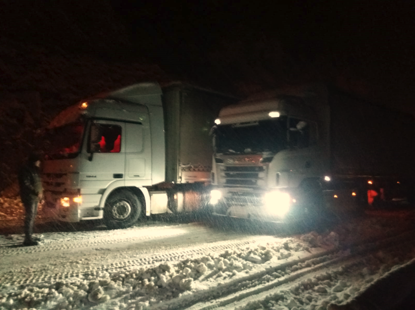 Öte yandan, kış lastiği olmayan araçların geçişine izin verilmiyor. Yolda kalan yüzlerce araç ise kurtarılmaya çalışılıyor.
