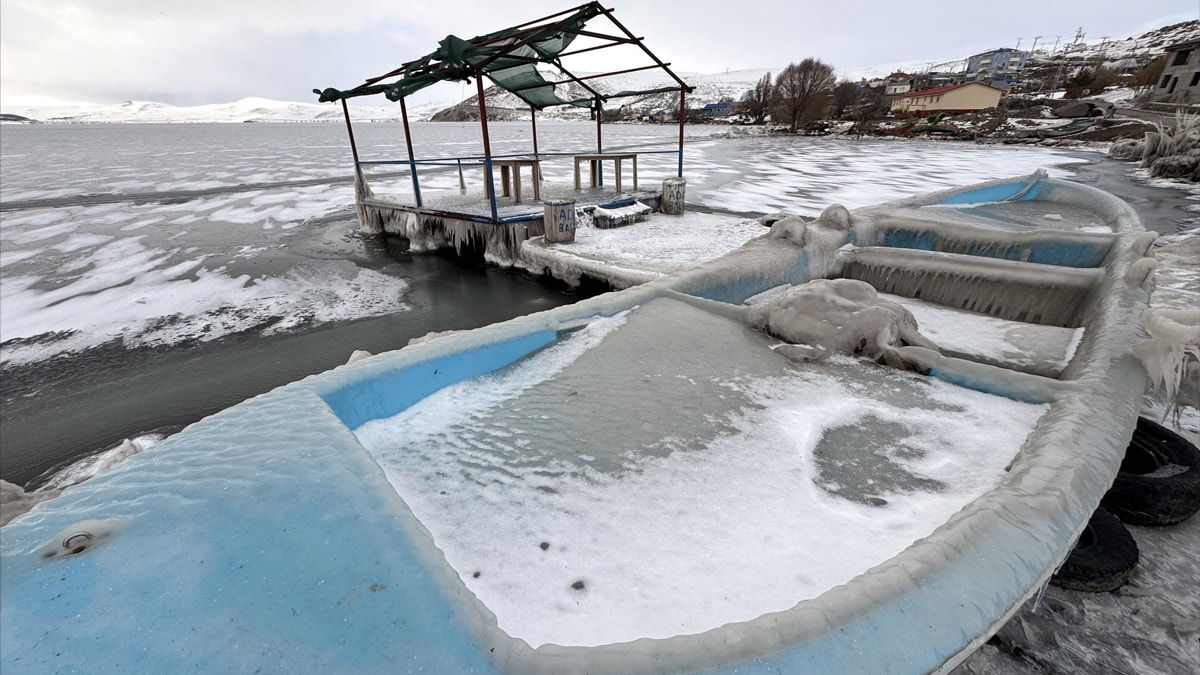 Hava sıcaklığının zaman zaman gece sıfırın altında 20 dereceye kadar düştüğü bugünlerde Çıldır Gölü'nün bir bölümü buz tuttu.