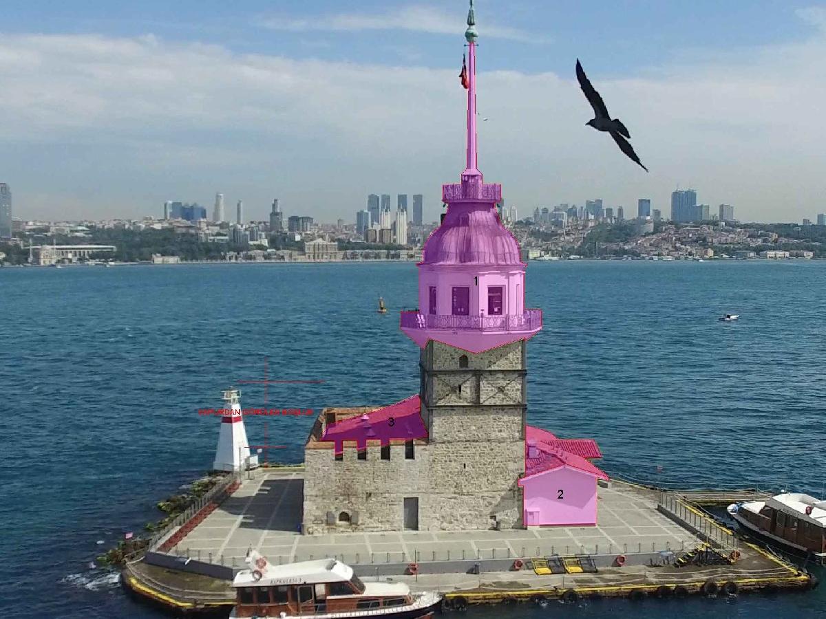 “Kız Kulesi restorasyonunu takip edebilen tanıdıklarıma durumu sordum. Bununla birlikte yapılan açıklamaları, restorasyon iskelesini, kendim de emin olabilmek için eşleştirdim. Dendanlar üstündeki 3 numaralı çatı da kalktığı için, vapur oradan geçerken silüette görülebiliyor.