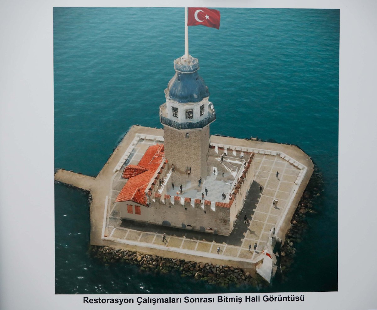 Kültür ve Turizm Bakanı Mehmet Nuri Ersoy, Eylül 2021'den bu yana restorasyon çalışmaları devam eden İstanbul'un sembol yapılarından Kız Kulesi'nde bugün yaptığı incelemelerin ardından açıklamalarda bulundu. Kız Kulesi'nin restorasyon esnasında çevresinin brandalarla çevrilmesi kule yıkıldığı iddialarını beraberinde getirmişti. Bakan Ersoy, bu duruma da değinerek, "İtalya'da da bu çaplı restorasyona gittiğiniz zaman dışına bir koruma iskelesi çekilir, koruma iskelesinin önüne de jüt örtü çekilir. Jüt zaten yarı şeffaftır. Özellikle yarı şeffaf çekiliyor ki görebilin diye. Burası dünyada en çok görüntülenen 5 binadan birisi. Bunu özgün haliyle ne kadar görüntülersek bizim için, İstanbul için, Türkiye için o kadar önemli" ifadelerini kullandı.