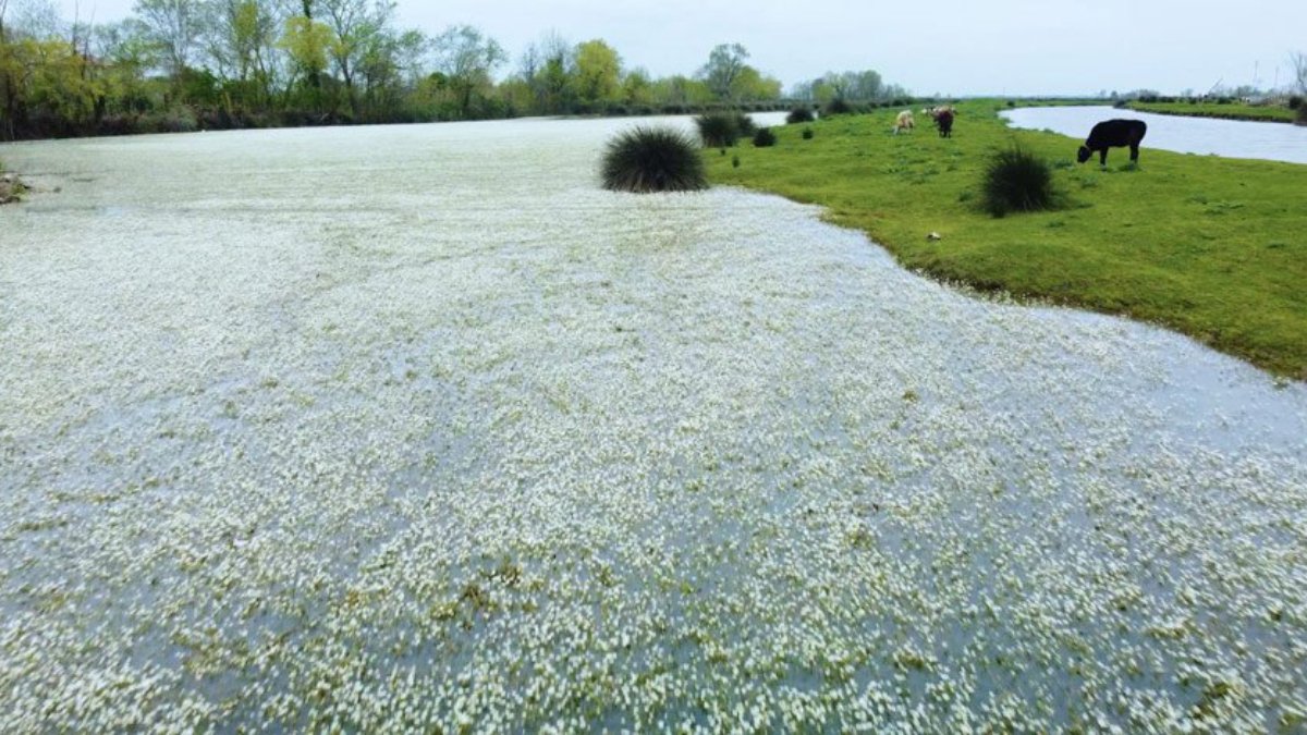 Samsun'un 19 Mayıs, Bafra ve Alaçam ilçeleri sınırlarında bulunan, Kızılırmak'ın denize döküldüğü bölgeyi de içine alan 56 bin hektar alana sahip Kızılırmak Deltası Kuş Cenneti'nde bulunan su düğün çiçekleri görenleri etkiliyor.
