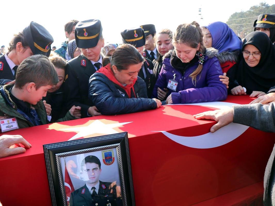 Şehidin cenazesi, evinin önünde alınan helalliğin ardından cenaze namazının kılınması için tekbirler eşliğinde mahalle mezarlığının önüne kurulan tören alanına götürüldü.