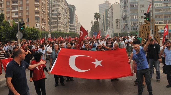 Bu arada Adana Kamu_Sen tarafından terörü protesto yürüyüşü düzenlendi. Adliye binası önünde toplanan yaklaşık 2 bin kişi “Askere, polise kalkan eller kırılsın”, “Şehitler ölmez, vatan bölünmez” sloganları attılar. Grup ellerinde Türk Bayraklarıyla Uğur Mumcu Meydanı’na kadar yürüdü. Gruba yoldan geçen otomobillerde korna çalarak destek verdi.