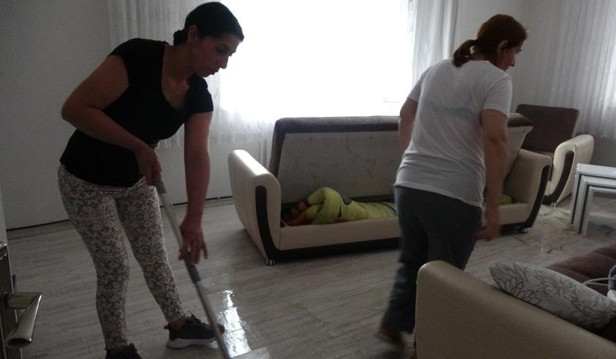 "Çocuğumuzun sınav yerine bakmaya gitmiştik. Geldiğimizde kapıyı açtığımız gibi selle karşılaştık. Sağ olsunlar komşularımızın yardımıyla evi temizledik. Eşyalar çok zarar gördü.