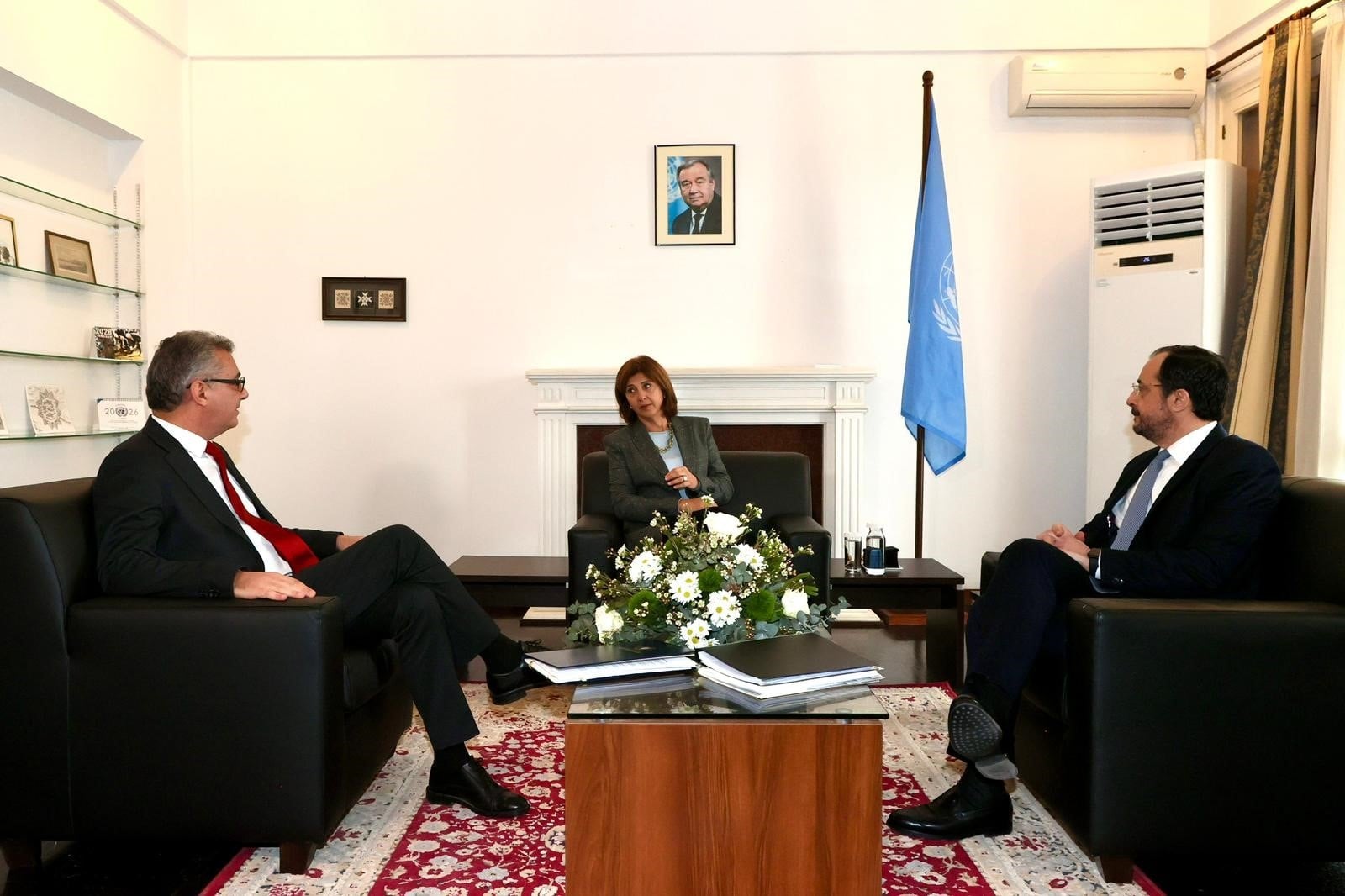 BM Genel Sekreteri’nin Kıbrıs Kişisel Temsilcisi Maria Angela Holguin ve BM Barış Gücü Misyon Şefi Khassim Diagne’nin ev sahipliğinde düzenlenen bu görüşme, iki lider arasındaki üçüncü üçlü zirve olarak kayıtlara geçti.