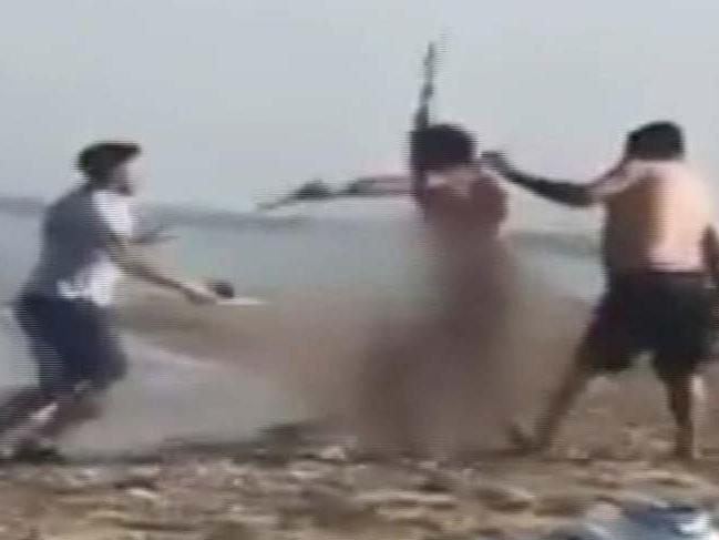 Sahildeki bir vatandaş tarafından kaydedilen görüntülerde, görevli ile çıplak adamın tartıştığı, ardından kavga etmeye başladığı; kavgaya bir başka kişinin de dahil olup, çıplak adamı darp ettikleri görülüyor.
