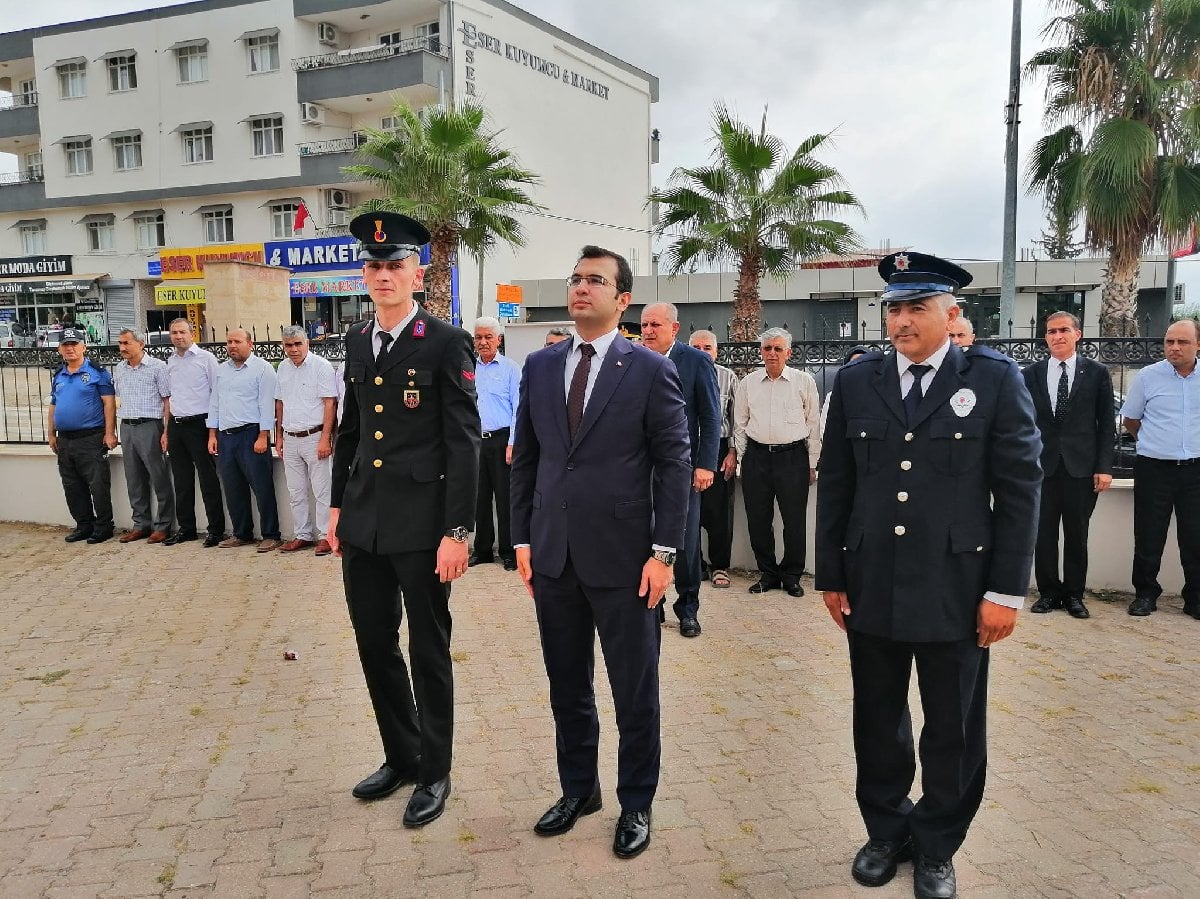 Törenlere de baktığımız zaman kaymakamının yanına bir polis memuru diyebileceğimiz  rütbede bir kişiyle bir uzman çavuş eşlik ediyor.