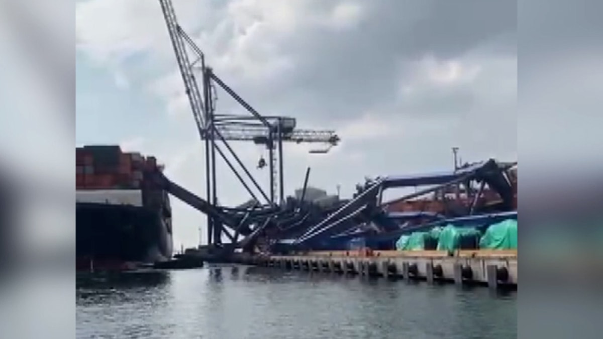 Kocaeli'nin Körfez ilçesinde bulunan özel bir limana yanaşan geminin kıyıya çarpması nedeniyle vinçler devrildi. Kaza anı vatandaşın cep telefonu kamerasına yansıdı.