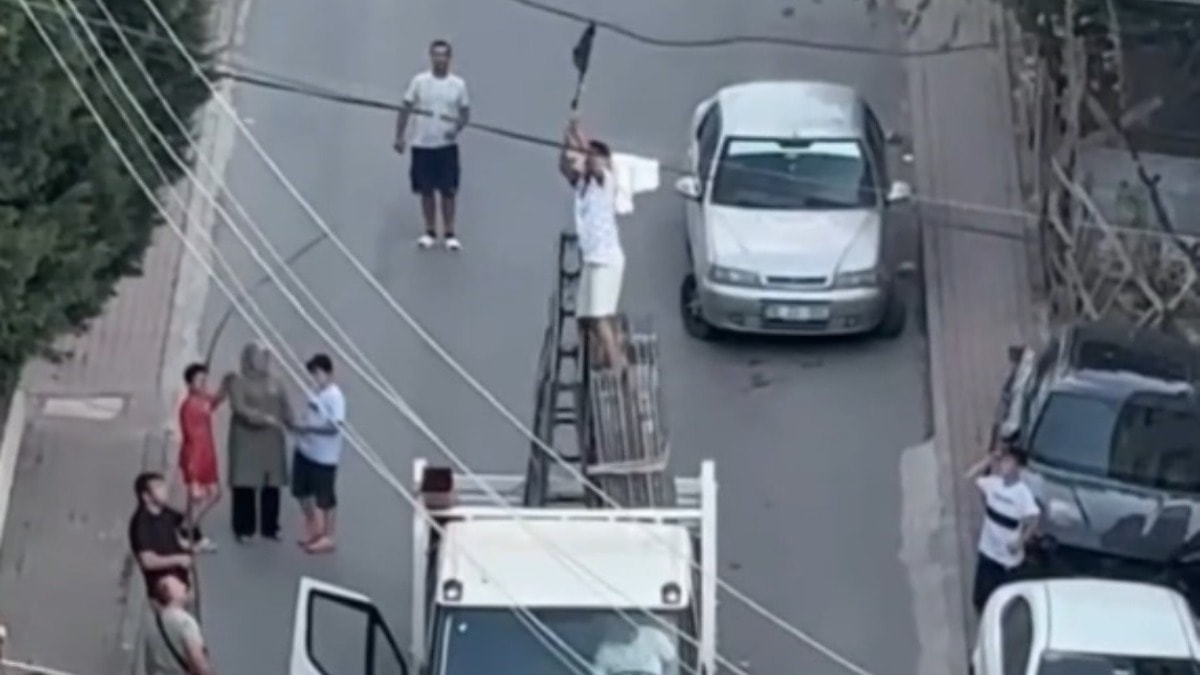 Alınan bilgiye göre Çayırova ilçesi Cumhuriyet Mahallesi’nde elektrik kablosunda asılı bulunan bez parçasına bir güvercinin ayağı takıldı. Çırpınan güvercini fark eden bir kişi, elindeki ağaç dalıyla hayvanı kurtarmaya çalıştı. Bu sırada cadden geçen mermer yüklü kamyonet elektrik kablolusunun altında durdu. Çevredekilerden biri, önce kamyonetin kasasına ardından mermerlerin üzerine çıkarak güvercini kurtardı.