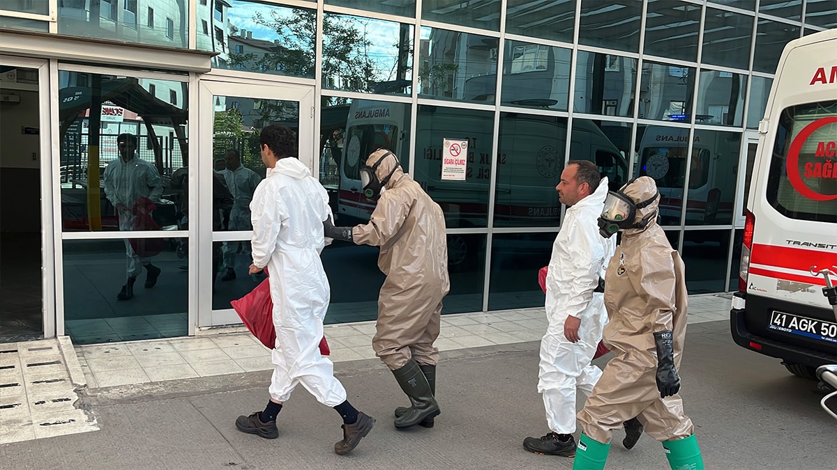 Alınan bilgiye göre Kocaeli’nin Dilovası ilçesindeki OSB’de bulunan bir kimyasal madde depolama sahasında, kimyasal maddelerin bulunduğu tankı temizleyen 4 işçi, zehirlenme belirtileri göstermesinin ardından fabrika yetkilileriyle birlikte Dilovası Devlet Hastanesi’ne başvurdu. İhbar üzerine hastaneye kimyasal olaylara müdahale aracının da bulunduğu itfaiye, sağlık ve polis ekibi sevk edildi. Olay yerine gelen Kimyasal Biyolojik Radyolojik Nükleer (KBRN) ekipleri, özel kıyafetler giyerek hastanenin bahçesinde bulunan KBRN ünitesinde yaptıkları ilk müdahalenin ardından işçileri ambulanslarla Gebze Fatih Devlet Hastanesi’ne sevk etti. 4 işçi burada gözetim altına alınırken, hayati tehlikelerinin olmadığı öğrenildi.