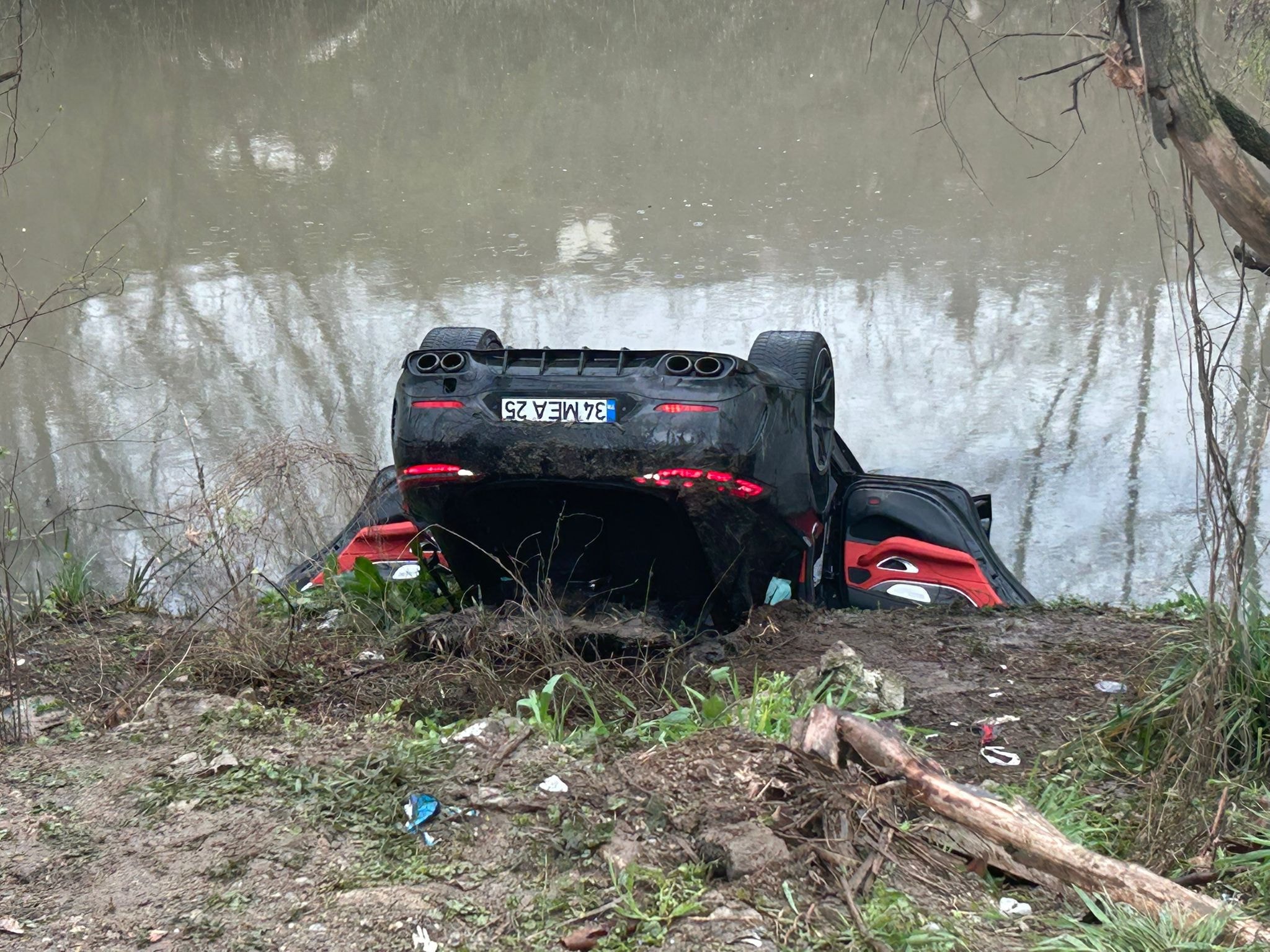 Kocaeli'nin İzmit ilçesi Sanayi Mahallesi Kuğu Sokak’ta meydana gelen kazada Eray Yıldırım’ın kontrolünü yitirdiği 34 MEA 25 plakalı otomobil, yol kenarındaki Kiraz Deresi’ne düştü.