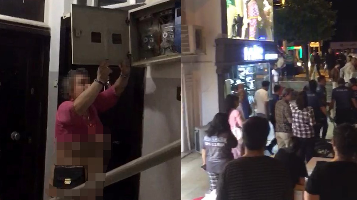 Üstündeki kıyafetleri de çıkardığı görülen kadının panoyu tahrip etmesi nedeniyle binanın elektriği kesildi. Bunun üzerine komşuları, T.A.'yı sakinleştirmeye çalıştı.