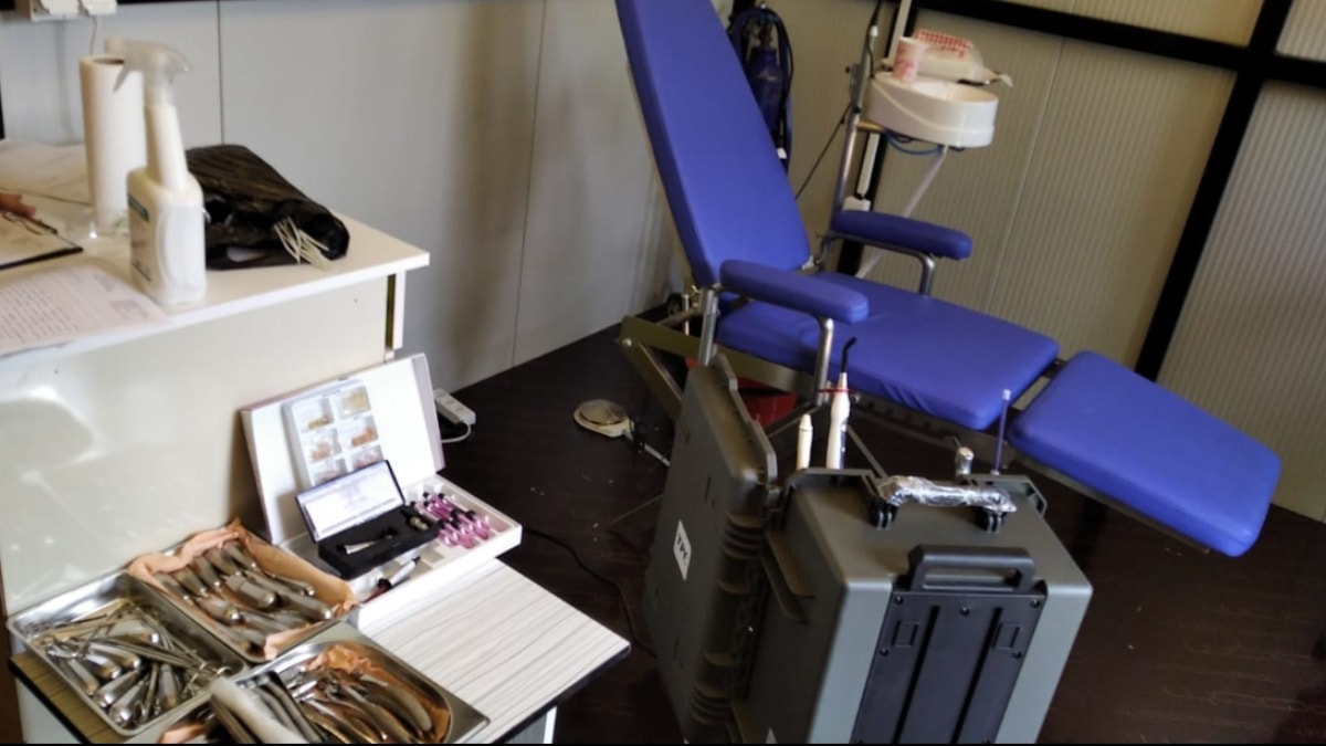 Konteynerde bulunan diş hekiminin diploması olduğu belirlenirken, içeride taşınabilir diş ünitesi ile diş muayenesi ve dolgu tedavisinde kullanılan çeşitli cihazlar, sarf malzemeler ve aletler ele geçirildi.