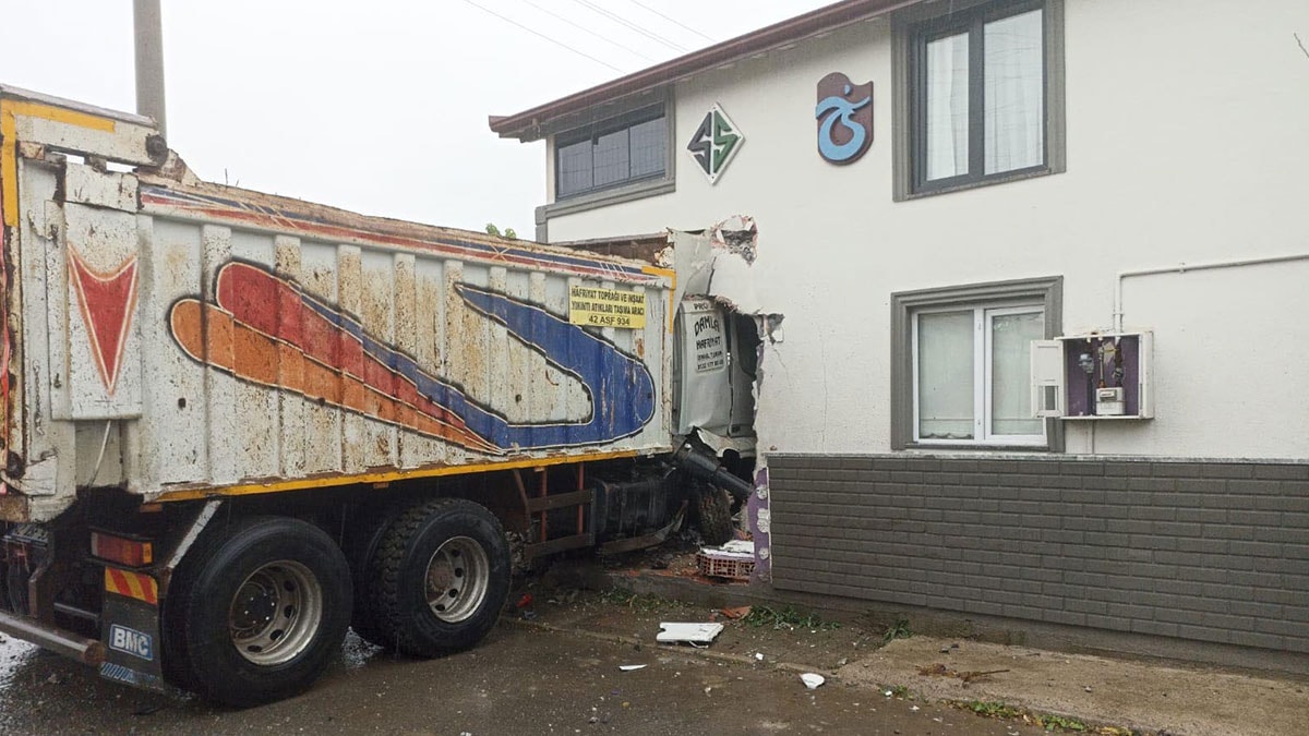 Sakarya'nın Serdivan ilçesinde rampa aşağı inerken kontrolden çıkan kamyon eve girdi. Kazada kamyon sürücüsü yaralanırken ev sahibinin eşi büyük korku yaşadı.