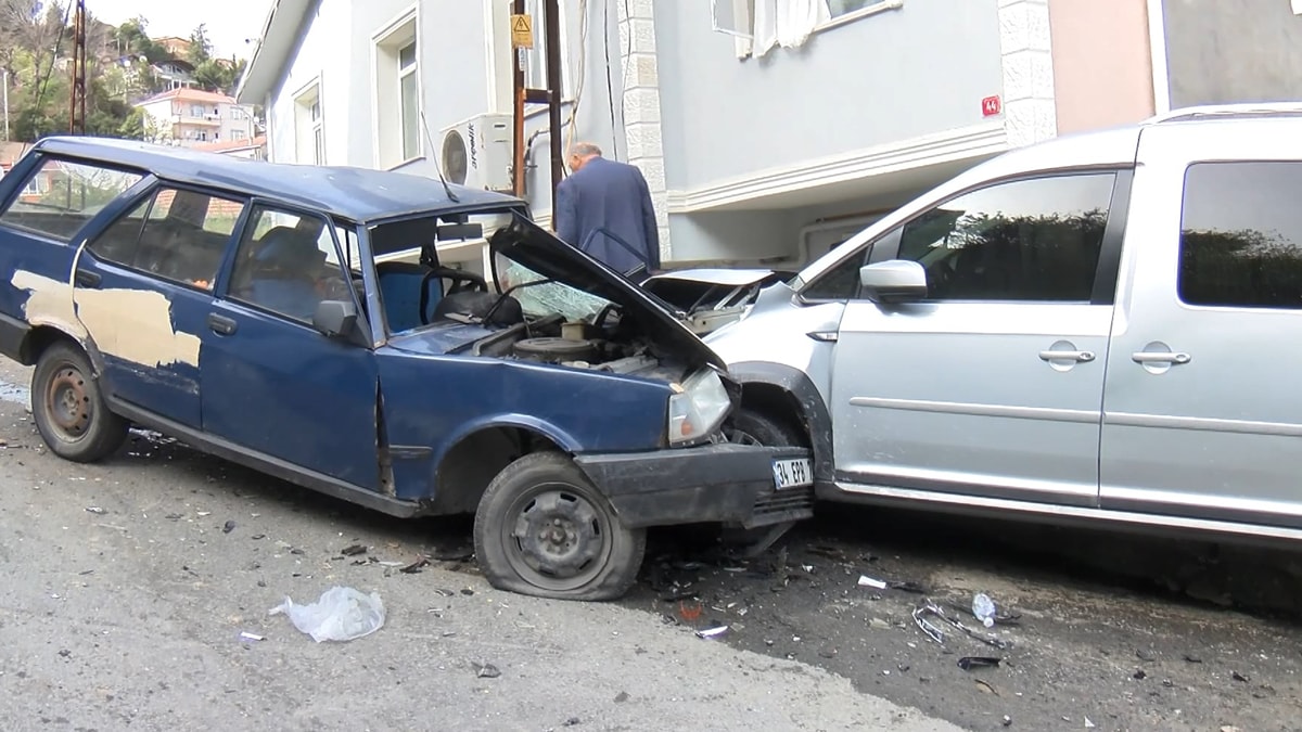Önce park halindeki hafif ticari araca vuran otomobil, aracı sürükleyerek park halindeki bir minibüse vurarak durabildi. Kaza sırasında sürücü otomobil içinde sıkıştı.