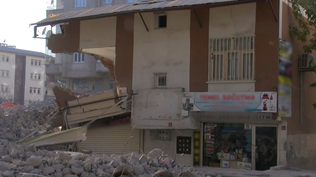 Diyarbakır'ın Bağlar ilçesinde 6 Şubat depremlerinde ağır hasar alan 8 katlı binanın kontrollü yıkımına başlandı. Yıkım sırasında bina, yanındaki evin üzerine çöktü. O anlar, cep telefonu kamerasına yansıdı.