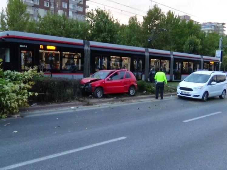 Kontrolü kaybolan otomobil tramvay yoluna uçtu