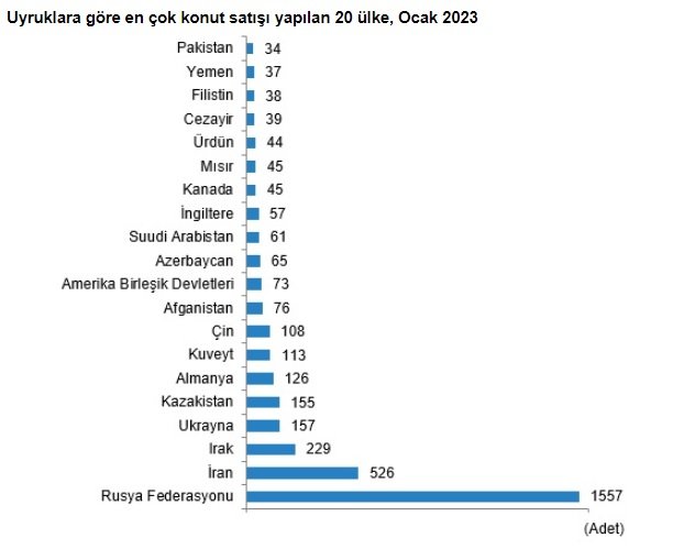 Rusya Federasyonu vatandaşlarını sırasıyla 526 konut ile İran, 229 konut ile Irak ve 157 konut ile Ukrayna vatandaşları izledi.