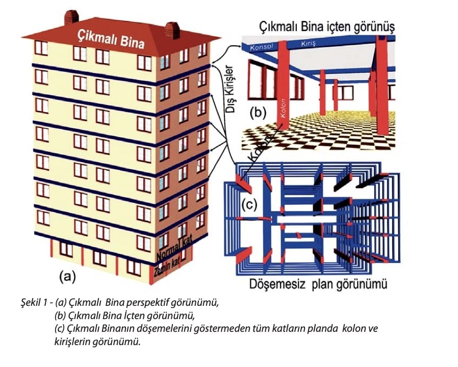 Çıkmalı yapıların depreme karşı gücünü artırmak için konsol ucundan geçen kirişleri kucaklayıp çerçeve oluşturacak deprem perdelerin yapılması gerekiyor.