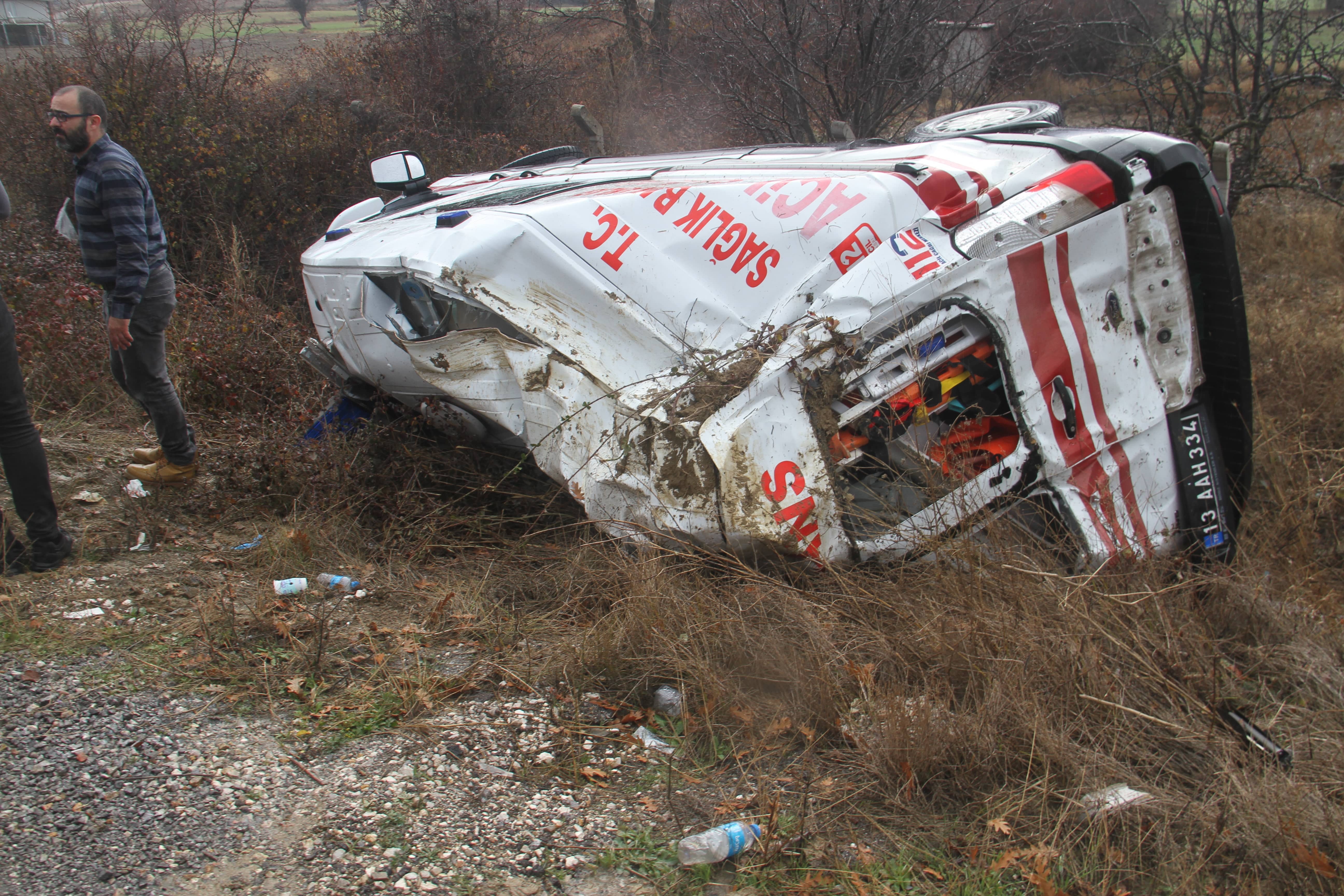Kazada ambulans sürücüsü Ö.A. ile ambulansta bulunan sağlıkçılar Behzat B. ve Adıgül G. ile kamyonetteki Emir G. ve Burak S. yaralandı.
