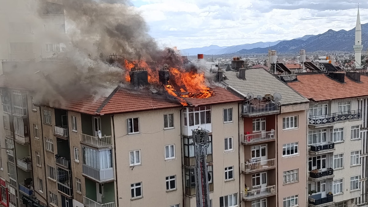 İlçeye bağlı Sofuhane Mahallesi'nde 5 katlı bir apartmanın çatı katında, henüz belirlenemeyen nedenle yangın çıktı.