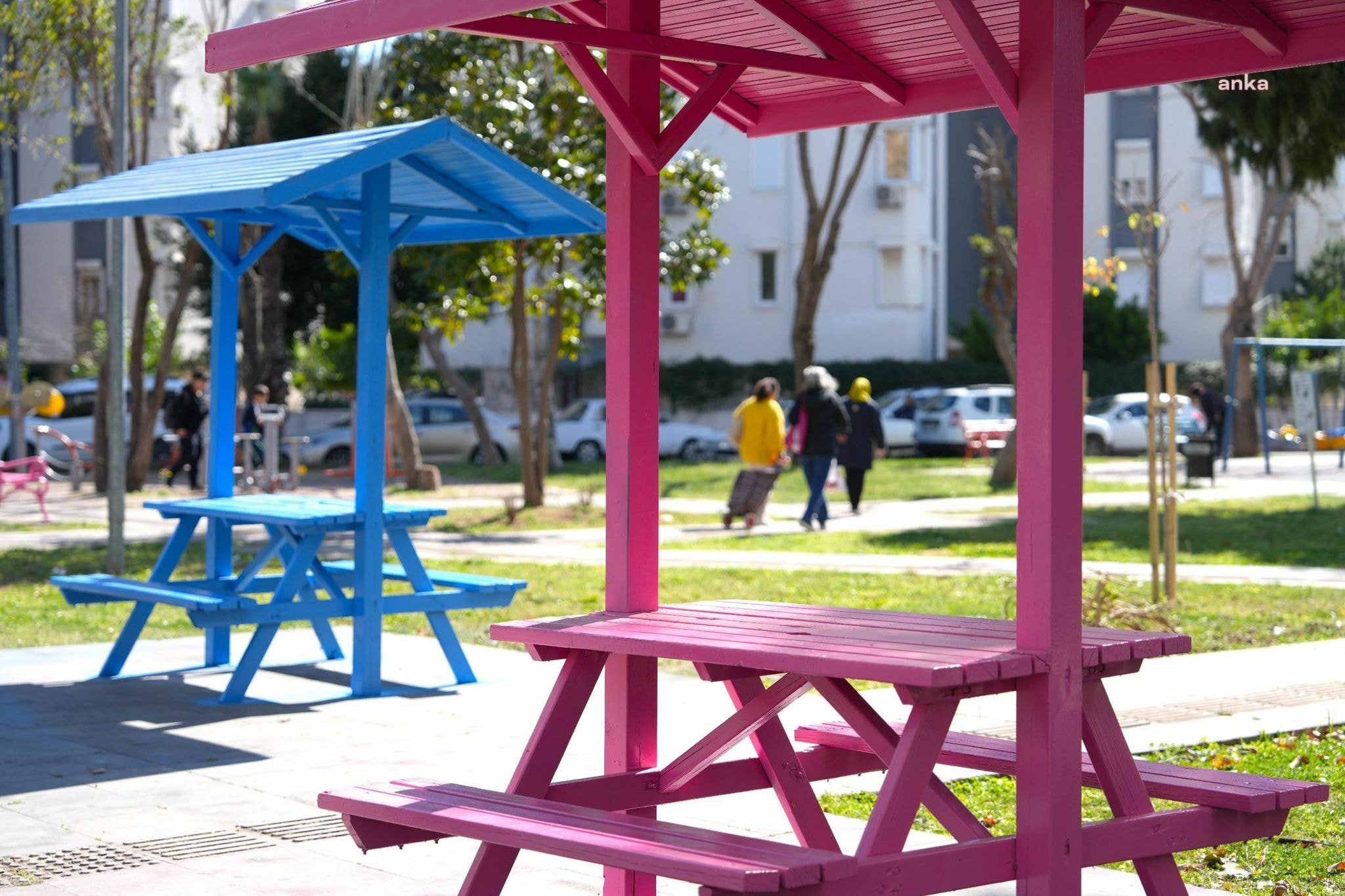 Turkuazdan pembeye, yeşilden maviye kadar daha birçok canlı rengin tercih edildiği çalışmalarla, ilçedeki oturma grupları göze hitap eden bir hale getiriliyor.