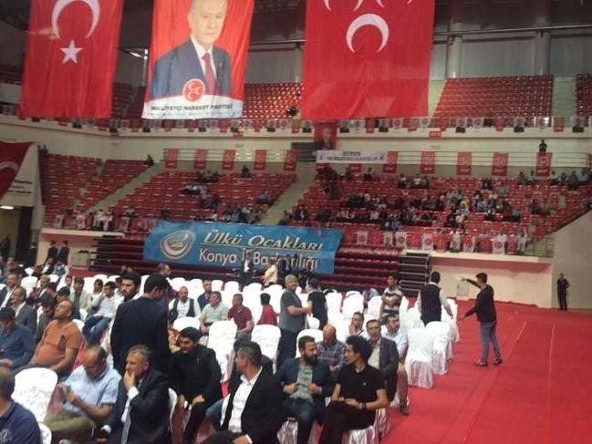 MHP lideri Devlet Bahçeli Konya'da partisinin düzenlediği toplantıya katıldı. Programın geciktirilmesine rağmen salonun büyük bir bölümünün boş kalması ise dikkatlerden kaçmadı.