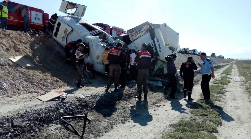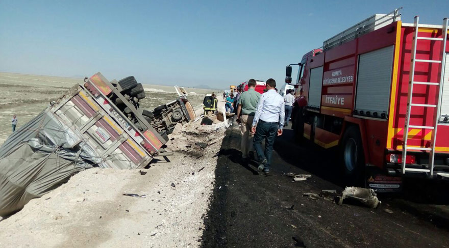 Çarpışmanın şiddetiyle savrulan her iki araç, şarampole devrildi. İki araç da hurda yığınına dönerken, minibüste bulunan ve aynı aileden olduğu tahmin edilen 10 kişi yaşamını yitirdi.Kazada yaralanan minibüste bulunan Ali Söğüncü ve Ali İbrahim Söğüncü ile TIR sürücüsü Eser Gürsoy ile Erdal Güngör ambulanslarla Ereğli ve Karapınar devlet hastanelerine kaldırılarak tedaviye alındı.