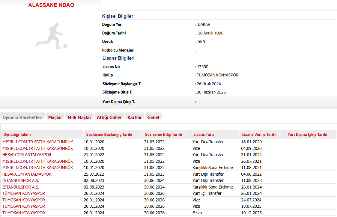 Bahis oynadığı gerekçesiyle PFDK'dan 12 ay ceza alan Alassane Ndao için savcılık soruşturmasında tutuklama kararı verilmişti. 28 yaşındaki oyuncu bu sezon 11 maçta 2 gol ve 2 asist kaydetti.