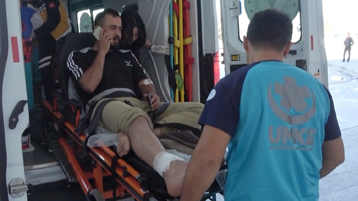 Çiftçi, sedyeyle ambulanstan indirilip acil servise götürülürken ise cep telefonuyla yakınlarına yaşadığı olayı anlattı. (DHA)