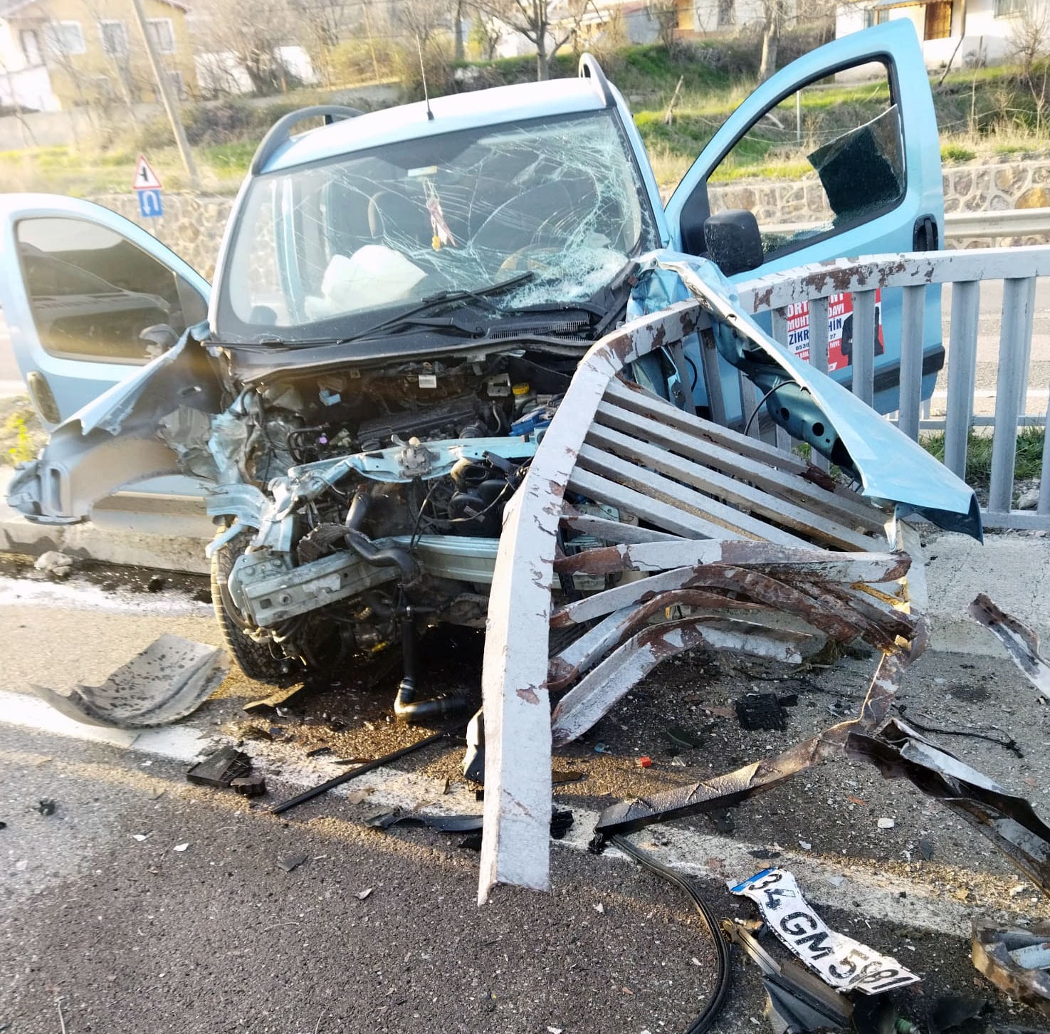 Sivas'ta E.Ş. (23) yönetimindeki 34 GM 5881 plakalı hafif ticari araç, D-100 kara yolunun Koyulhisar ilçesi Yukarıkale Mahallesi yakınlarında köprünün demir korkuluklarına çarptı.