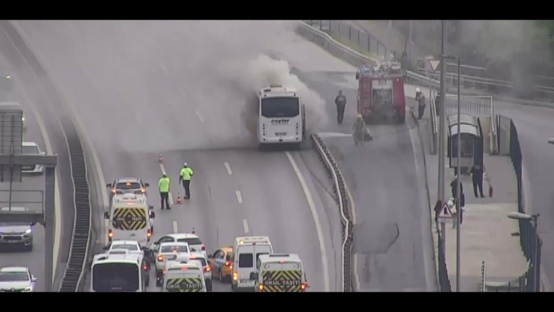 Polis ekipleri sağ şeritteki midibüsün etrafına dubalar koyarak önlem aldı. Yangın nedeniyle Anadolu yakasından Avrupa’ya geçenler için yol, bir süre trafiğe kapatıldı.