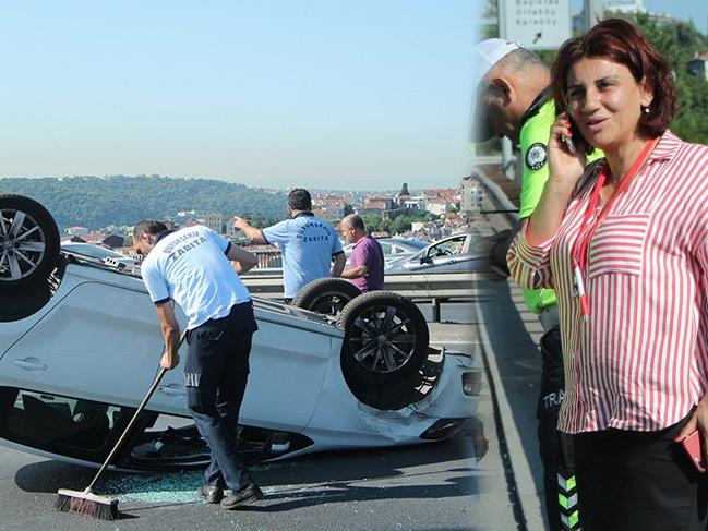 Kaza 15 Temmuz Şehitler Köprüsü çıkışında saat 09.00 sıralarında meydana geldi. İddiaya göre Avrupa Yakası İstikametinde ilerleyen 34 AEZ 083 plakalı otomobili kullanan Burcu A. henüz bilinmeyen bir nedenle önünde seyreden Suna Zihni'nin kullandığı araca çarparak takla attı. Kazada Burcu A. yaralanırken, haber verilmesi üzerine kaza yerine ambulans ve polis ekipleri sevk edildi.