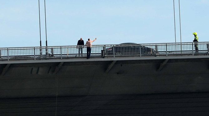FOTO: DHAİntihar, dün öğlen saatlerinde Boğaziçi Köprüsü'nde yaşandı. İddiaya göre, alkolllü olan Erol Çetin, otomobille köprüden geçerken, bir anda aracını durdurdu. Çetin, üzerindeki tişörtünü çıkararak köprünün korkuluklarına tutundu. Olayı kameradan gören Köprü Koruma Şube Müdürlüğü'ne bağlı ekipler belirlenen noktaya yönlendirildi. Müzakere eğitimi alan polisler, Erol Çetin'i intihardan vazgeçirmeye çalıştı.