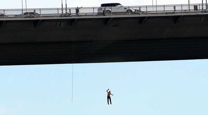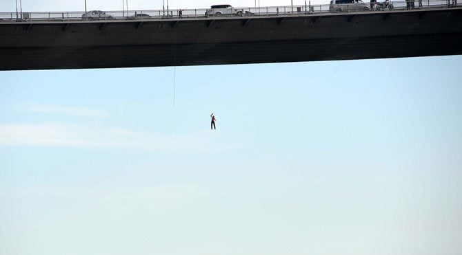 FOTO: DHAAlkollü olduğu için anlık tepki değiştiren Çetin, tam ikna olduğu sırada istenmeyen bir gelişme yaşandı. İddiaya göre, yoldan geçerken intihar girişimi sebebiyle oluşan trafiğe sinirlenen bir minibüs sürücüsü, köprü üzerinde aracını durdurdu. Araçtakiler, "Atlasana, ne oyalıyorsun insanları" diye bağırmaya başladı. İddiaya göre, polisin ikna etmek için 45 dakika görüştüğü, Erol Çetin, minibüstekilerin sözleri üzerine, kendisini boşluğa bıraktı.