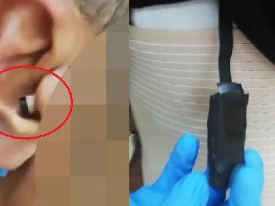 Silifke E-Sınav Merkezi'nde ehliyet sınavına giren M.M.'nin üzerinde arama yapan görevliler, korse içerisine gizlenmiş taşınabilir modem, karta yapıştırılmış telefon düzeneği, yaka düğmesine konulmuş kamera ve kulak içi kablosuz kulaklık buldu.