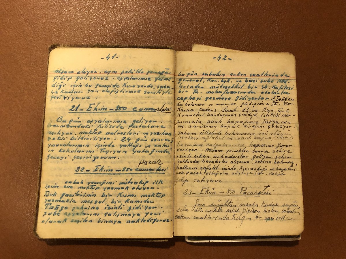 "Dedem Kore'de kaldığı süre boyunca 4 adet günlük tutmuş ve bu günlüklere de hissettiklerini, duygularını ve o dönem yaşanılanları kaleme almış. 27 Kasım Türk birliklerinin en çok kayıp verdiği Kunuri Muharebesi'nin yıl dönümü. Kendisi zaten Kunuri Muharebesi'nin birkaç gün öncesinde Kunuri'nin haritalarının dağıtımı konusunda görevli. Bunların tasvirleriyle uğraşıyor. "