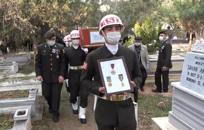 Cenaze törenine katılan Kırıkkale Valisi Bülent Tekbıyıkoğlu ve Garnizon Komutanı Tuğgeneral Mehmet Ali Durmuş, gazinin oğlu Seyfettin ile kızları Dilber ve Suzan Atasoy'a başsağlığı diledi. (İHA)