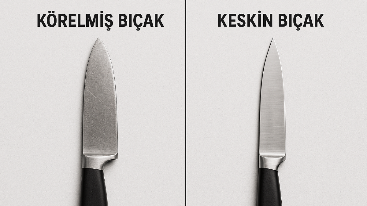 Körelen bıçakları çöpe atmak yerine basit yöntemle keskinleştirip kullanabilirsiniz. Doğru yöntemlerle bıçakları ilk günkü performansına döndürmek artık mümkün. Uzmanlara göre, bıçağın yeniden keskinleşmesi için için en etkili yöntem bileme taşı.